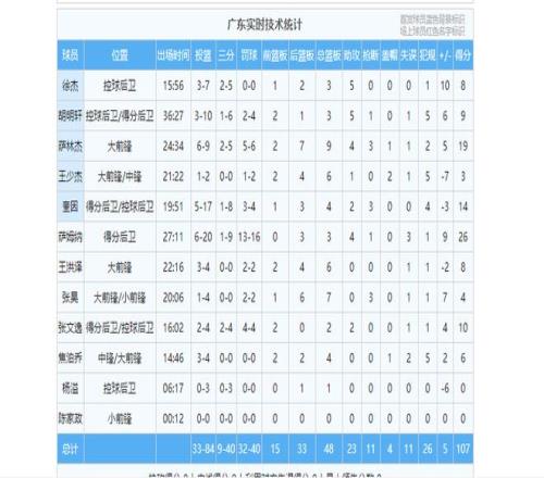 广东男篮首轮击败同曦男篮得到107分