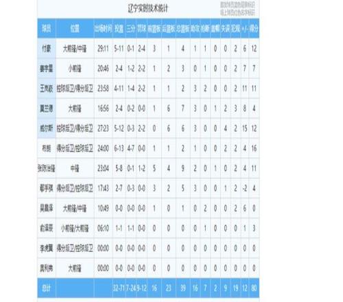 辽篮男篮首轮击败天津男篮得到80分