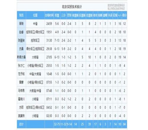 北京男篮首轮击败江苏男篮得到84分