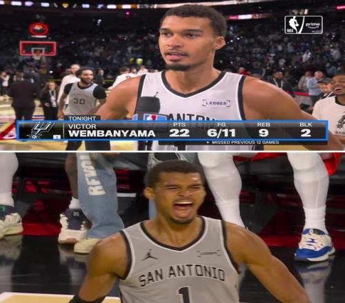 “文班亚马的回归让场上的一切变得更轻松,我们的未来不可限量。他一直渴望复出,最终也确实在关键时刻挺身而出。”福克斯对自己身边的大个子赞不绝口。