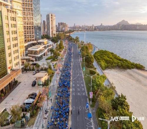 “好海水,在汕尾”不只是一句响亮的口号,更是汕尾的底气。这次活动在品清湖畔举行,一方面得益于近年来汕尾城市建设的高质量发展,“百千万工程”的落地落实、经济社会的高质量发展让汕尾有能力承办这样的大型赛事,另一方面,绿美汕尾生态建设以来,汕尾的生态环境“更上一层楼”,山海相映衬,城景更相融。汕尾品清湖是中国大陆最大的滨海潟湖,地处北纬23°左右、水域面积约23km²、平均盐度约23‰、平均水温约23℃。其半封闭的地理特征,使得湖面比开放海域风浪更小、水流更平缓,能为游泳赛提供更安全、可控的竞赛环境。而成熟的滨海景观赛道则为赛事的举办增添一丝保障。目前,汕尾品清湖已建成21.3公里北岸碧道、9公里南岸滨海碧带,路况优良、视野开阔、坡度平缓,非常适宜作为自行车骑行和跑步赛的赛道。