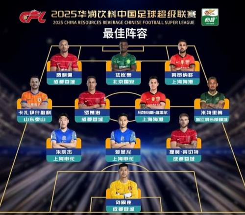 2025赛季中超最佳阵容:法比奥、瓦科领衔,蒋圣龙、朱辰杰入选